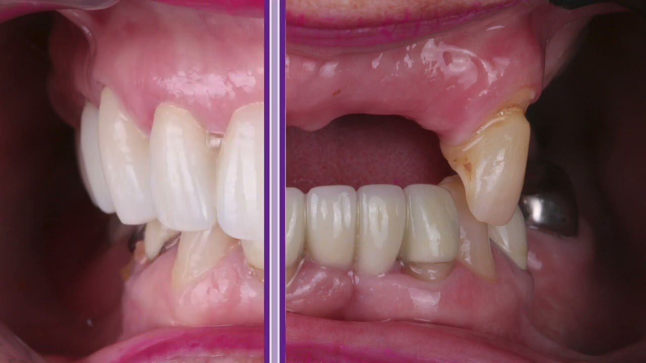 Before And After Partial Denture Replaced By A Zirconia Lingual With Ceramic Bridge Transformation Youtube