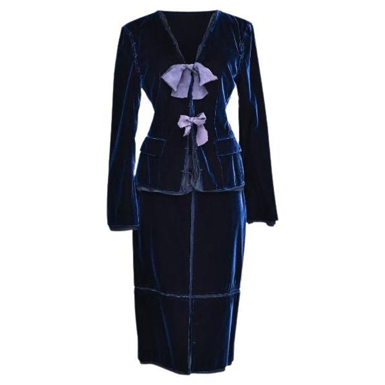 A W 2002 Yves Saint Laurent By Tom Ford Blue Velvet And Silk Ribbons Suit Set For Sale At 1stdibs